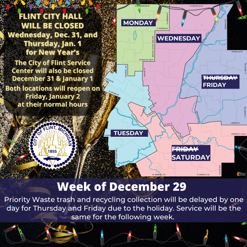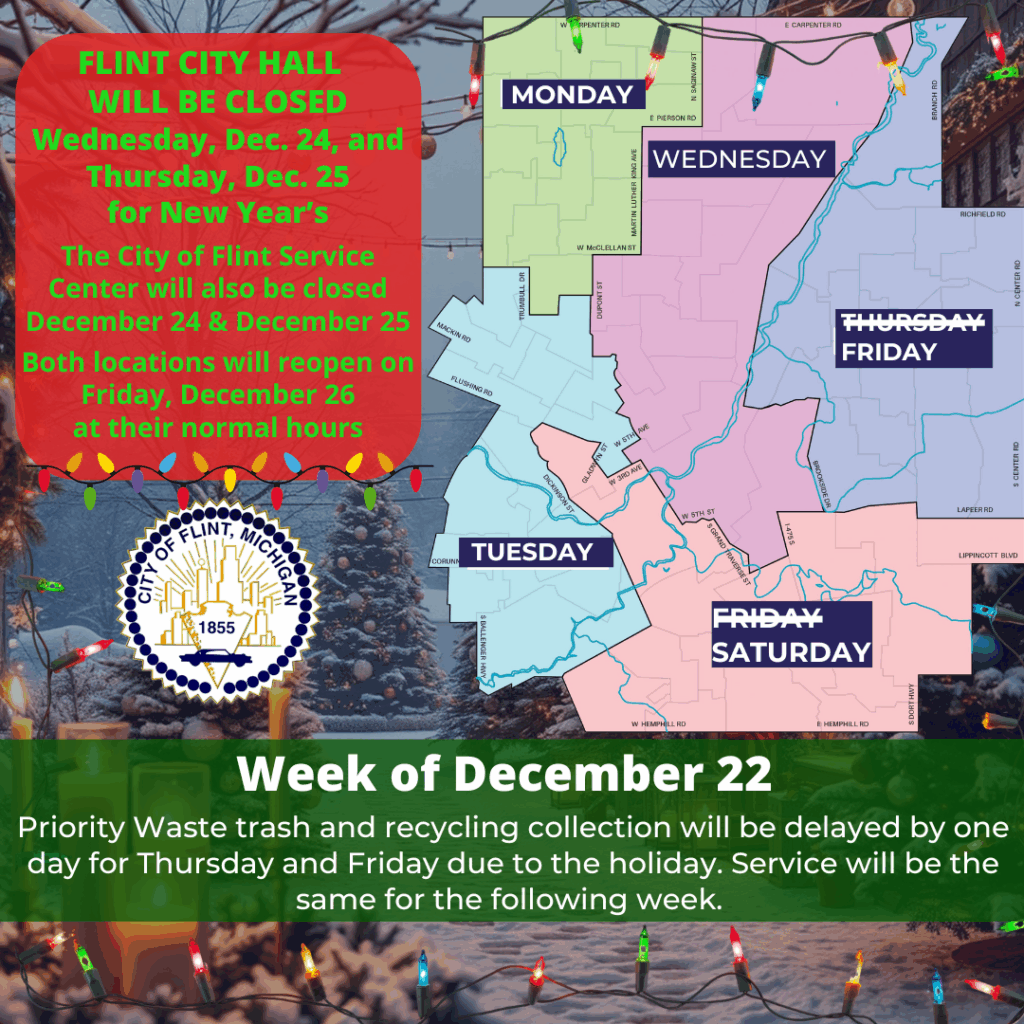 City of Flint Christmas and New Year’s Holiday Hours, Waste Collection Schedule