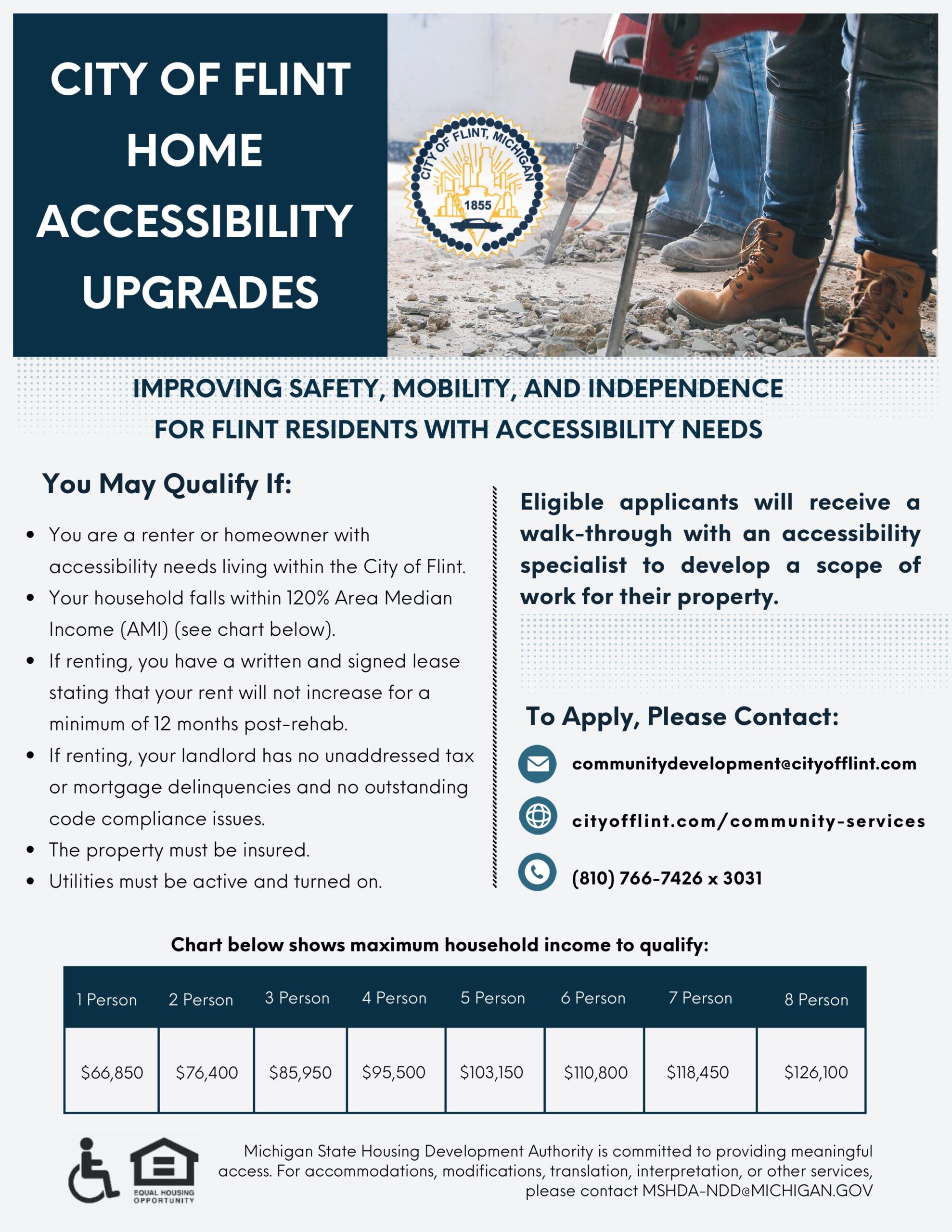 - You are a renter or homeowner with accessibility needs living within the City of Flint.