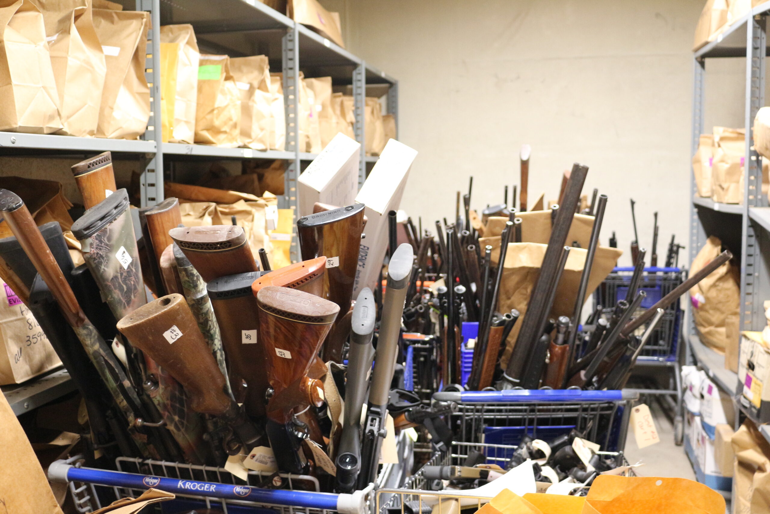 The majority of the weapons were seized during police investigations, and some were surrendered by citizens during gun bounty programs.