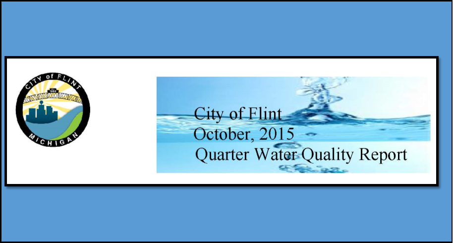 The City of Flint Department of Public Works has published its Quarterly Water Quality Report for October, 2015. The Quarterly Water Quality Report provides important information about Flint’s drinking water, including information about the water source, current drinking water issues, lead information, water filters, testing, 3rd quarter news, and temporary expectations when changing water sources. The report is being mailed to all City of Flint water customers and contains the following highlighted events by month: