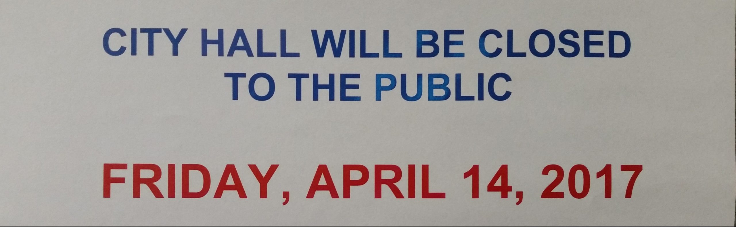 Please be advised that Flint City Hall will be Closed to the public Friday, April 14, 2017. The facility will re-open Monday, April 17, promptly at 8:00 a.m. There will be NO interruption in waste collection services in the City of Flint this week due to the holiday.