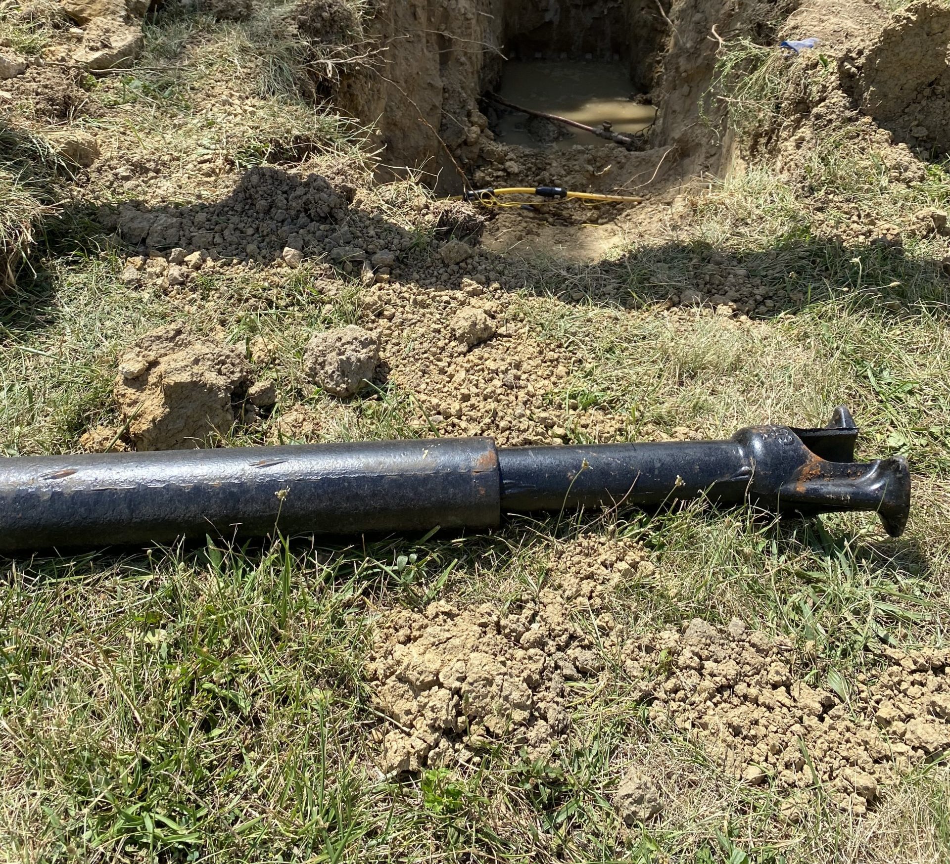 — Crews dig a hole to check the home’s pipes.